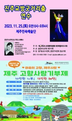 ❍ ‘깊은 가을 춤으로 풍류를 그리다’ 라는 슬로건으로 경남흥청무지회와 문화교류를 개최했다. 진주교방무와 강선영태평무, 제주태왁춤, 소고춤, 진도북춤으로 막을 내렸으며 제주 고향사랑 기부제도 함께 진행 했다.