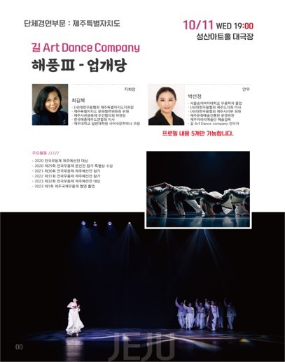 ❍ 길 Art Dance company와 제주오름무용단의 적이라는 작품 (안무 유지우) 과 길 Art Dance company ,해풍 Ⅱ해녀 항일운동 하다라는 (안무자 최길복 )작품으로 대상을 수상하여 제주본선에 진출하는 티겟을 받았다