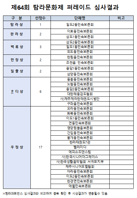 공지사항 제주예총 활동 소식을 만나 보세요. 제64회 탐라문화제 탐라퍼레이드 결과 안내 2025-10-12 06:19:42 작성자관리자 (manager) IP : 121.189.106.33 조회수181 +파일첨부 파일등록 업로드 용량은 최대 5M입니다. 파일선택 비밀번호 취소 닫기 첨부파일(1) 파일 로딩중 Facebook Twitter Kakaostory google 프린터 목록 수정 삭제 게시물삭제 삭제하신 데이터는 복구가 불가능합니다. 게시물 제64회 탐라문화제 탐라퍼레이드 결과 안내 비밀번호 취소 닫기